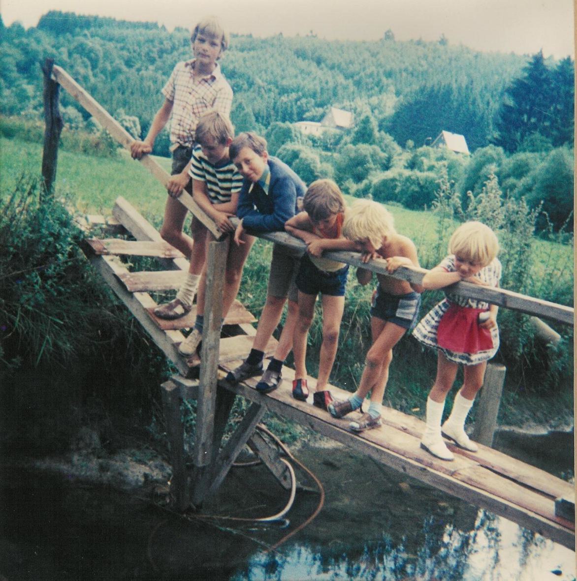 Der 1962 in Drolshagen geborene Jörg Stamm ist ein wahrer Weltbürger. Sein eigentlicher Wohnsitz ist zwar seit über 25 Jahren in Kolumbien/Südamerika – doch seine beruflichen Aktivitäten erstrecken sich über den ganzen Erdball, ist er doch ein weltweit gefragter Experte im Bauen mit Bambus. Seine Talente zum Werken und Bauen mit Holz zeigte sich wohl schon als Sohn eines Bauunternehmers in seiner Kindheit, wie dieses Foto beweist: er auf einer selbstgebauten Brücke über den Rosebach im Fredebruch. Nach seiner Schreinerlehre ging es dann in die weite Welt...