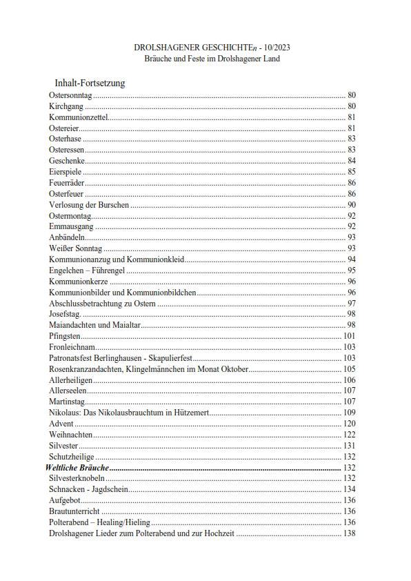 Der Archivarbeit von Dr. Peter Vitt entstammen die Beiträge über einen Kindsmord des Jahres 1805 und über zwei bedeutende Gelehrte aus Drolshagen, Peter Nehemius und Peter Drolshagius, die im hohen Mittelalter in Dortmund und Heisterbach zu akademischem Ruhm gelangten. Außerdem berichtet er über die Kapitelssitzung der Ritter vom Heiligen Grab zu Jerusalem in Drolshagen am 2. April 2022 und stellt uns kurz diesen Orden vor. Schließlich half Dr. Vitt bei der Aufbereitung von zwei hochinteressanten Augenzeugenberichten aus der Familie Josef Stahlhacke über die letzten Tage des 2. Weltkrieges in Junkernhöh, Germinghausen und Köbbinghausen.