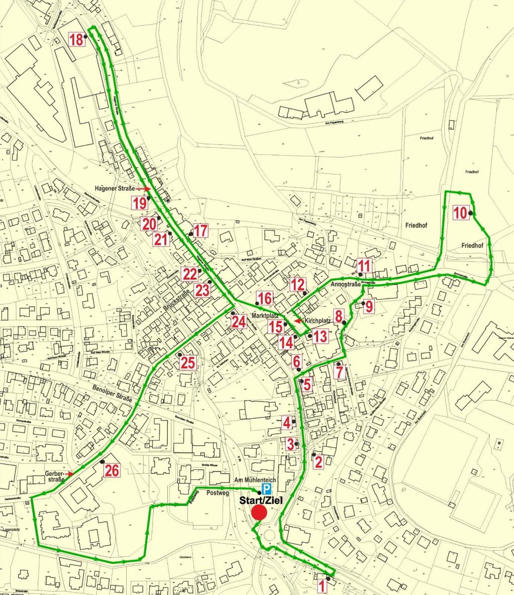 Parkplatz Mühlenteich - gegenüber Hotel zur Brücke, Hagener Str. 12 (Start und Ziel des Rundgangs)