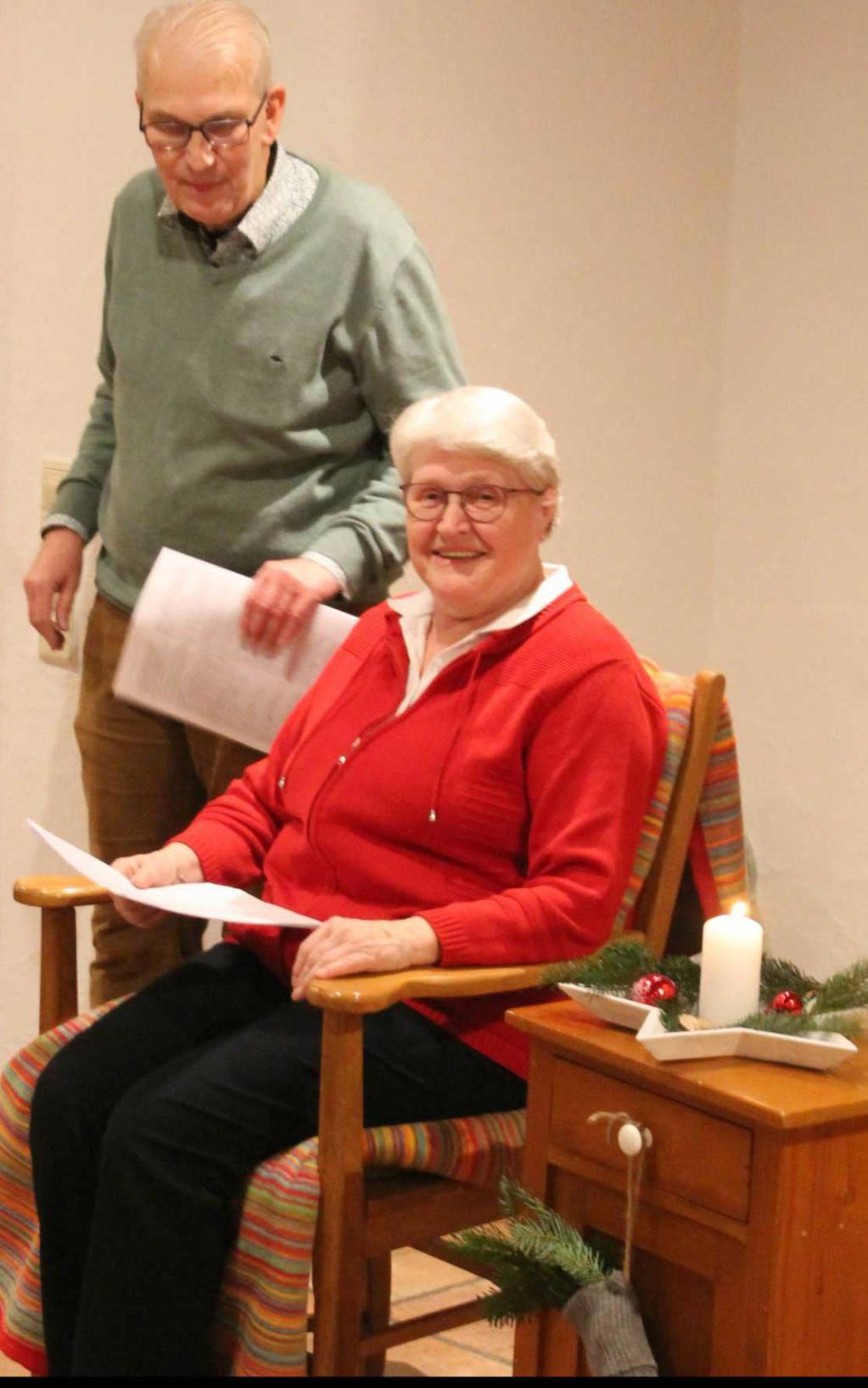 Ein Stück authentische Heimatgeschichte kam durch den Weihnachtsbrief von 1941 in die mucksmäuschen stille Runde, als dieses von Grete Ackerschott an ihren Bruder Hermann an der Kriegsfront geschriebene Gedicht vorgetragen wurde. Sie schilderte darin in gekonnter Reimform, was in der Vorweihnachtszeit in ihrem bescheidenen Haushalt so alles vonstatten ging. Es war auch ein Mutmachen in einer düsteren Zeit und unmissverständlich ausgesprochen der Wunsch nach Frieden. Insgesamt 15 Personen trugen die zum guten Teil sensibel und poetisch geschriebenen plattdeutschen Texte vor.