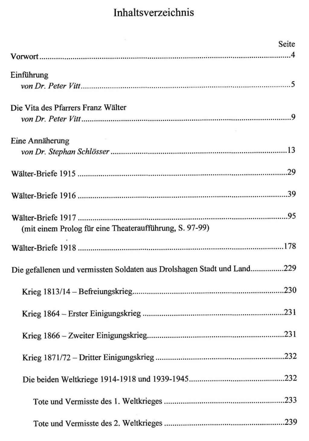 Im Sommer 2016 erhielt Peter Vitt von dem früheren Ortsheimatpfleger Felix Stahlhacke, zwei Aktenbündel mit über 130 Blättern, die dieser wiederum vor Jahren von Hans Wagner bekommen hatte. Wie Felix Stahlhacke erklärte, handelte es sich um Mitteilungen von dem Drolshagener Pastor Franz Wälter an die Drolshagener Soldaten, die ihren Dienst während des 1. Weltkrieges an der Ostfront in Russland, der Westfront in Frankreich und den später hinzugekommenen Fronten verrichteten.